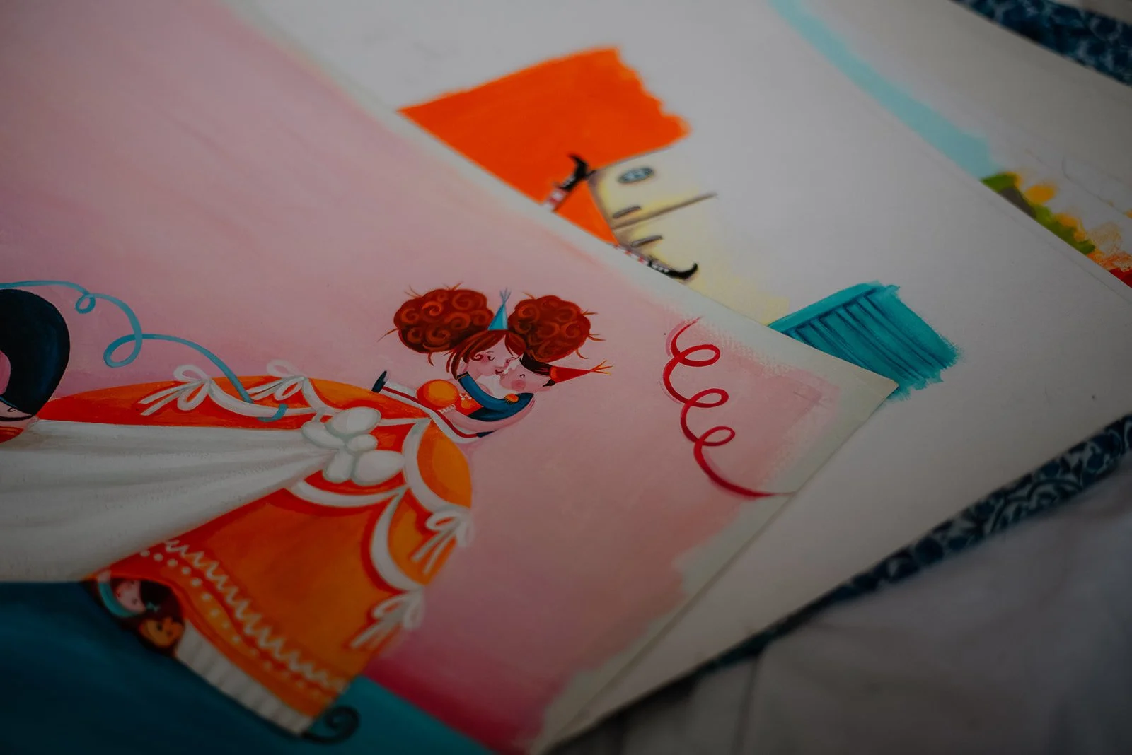Is a Belgian illustrator, living in Leuven with four feisty daughters, one sweet son three fluffy cats and a very stubborn Corgi. She studied illustration at Sint Lucas Antwerp. In 1998 her work was selected for the ‘Figures Futurs’ exhibition in Montreuil (Paris, France). From then on she worked as a freelance illustrator for several magazines and newspapers.